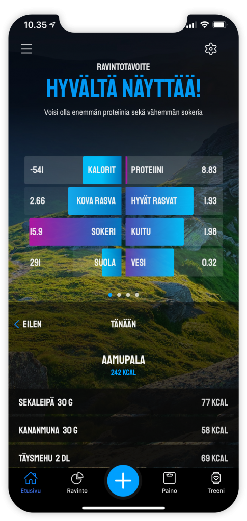 nopea ravinnon kirjaus ja välitön havainnollinen palaute auttavat saavuttamaan tavoitteesi!